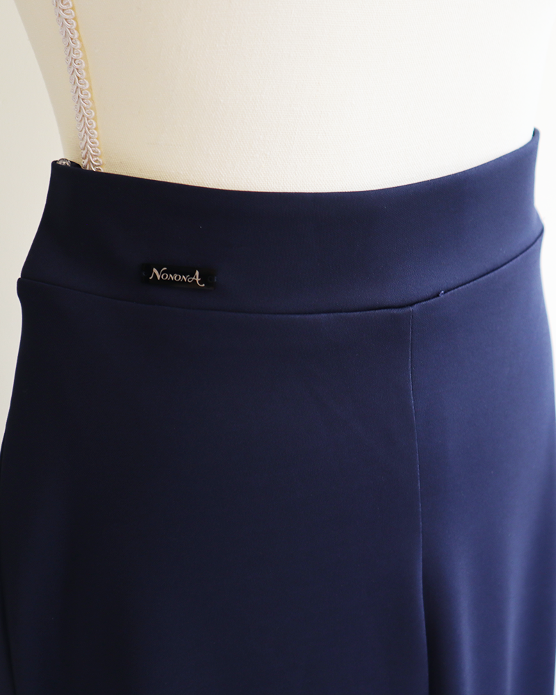 多少の体型の変化にも対応できるように後ろ見頃は総ゴム仕様にいたしました。ウエストはご自身のサイズに自然にフィットし、ボリュームのあるトップスともバランスよくお召しいただけます。
