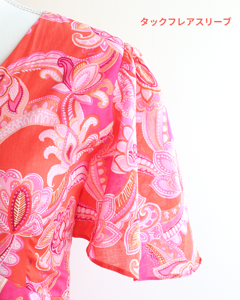 肩にギャザーを寄せ、軽やかに広がる袖。華やかさと柔らかさを演出。