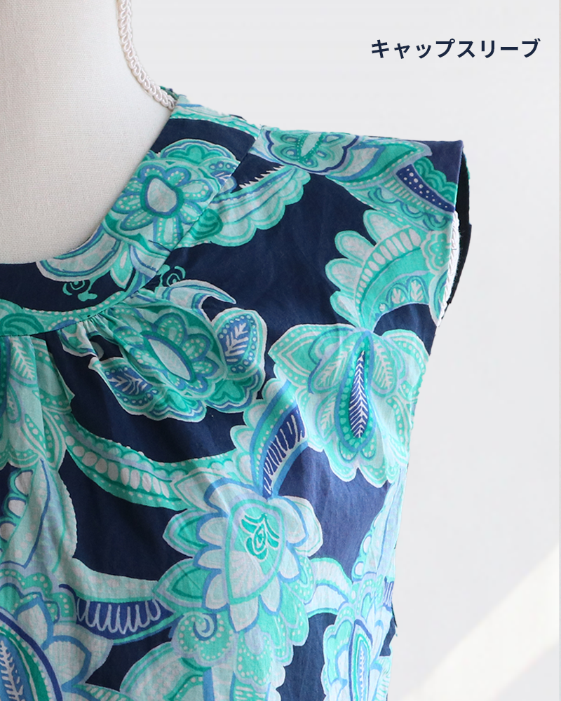 コットン素材ならではの軽やかさに加え、裾に向かってたっぷりと入ったギャザーが動くたびに揺れ、シワを気にせず着られるのも魅力です。