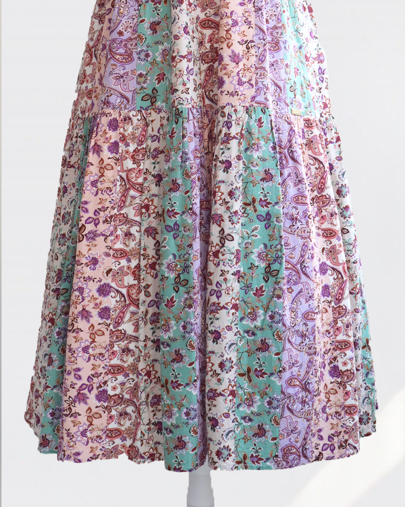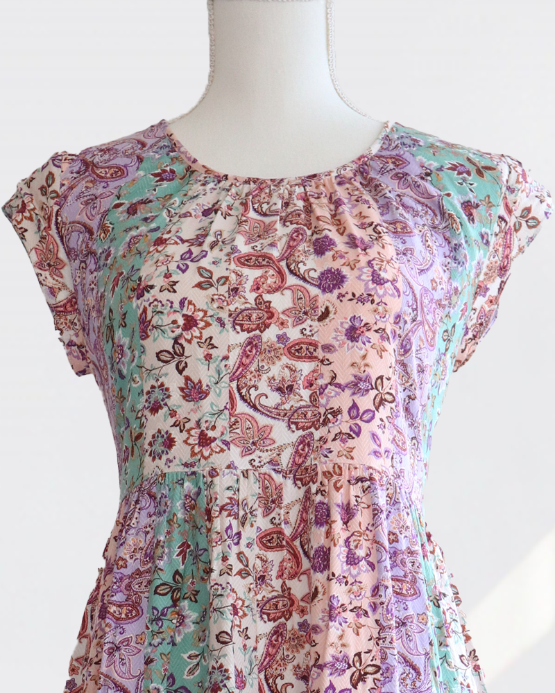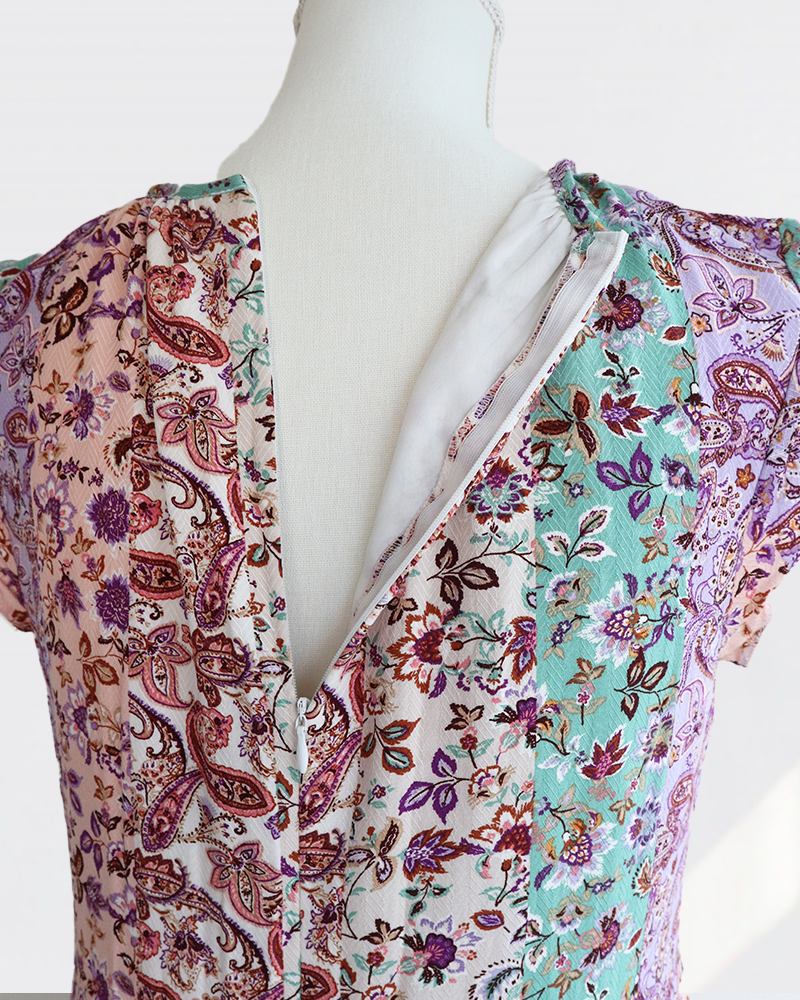 前身頃は2段、後ろ身頃は3段に切り替えを入れたティアードデザインにしました。そのため、動くたび、角度により段差の揺れが異なり、奥行きのある表情を生み出します。