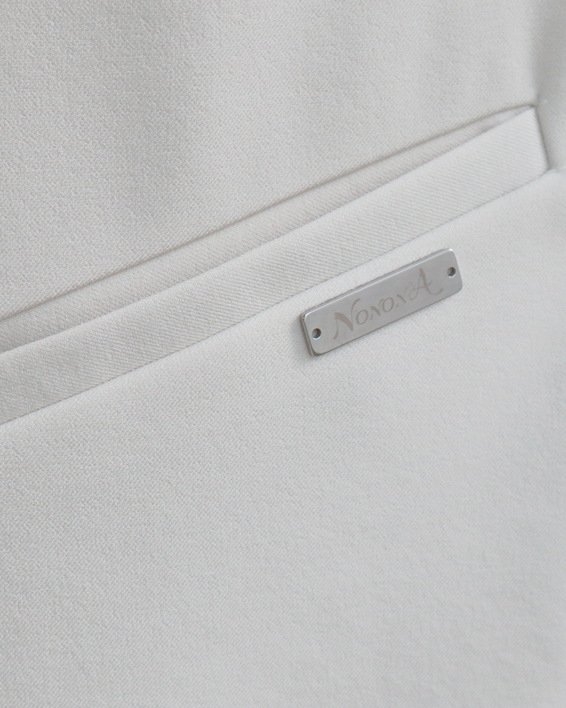 パンツも細身で美しいラインを演出いたしました。ウエストの後ろは総ゴム仕様のため、動きやすさと快適さを両立しながら、ウエストまわりはすっきり見せてくれます。